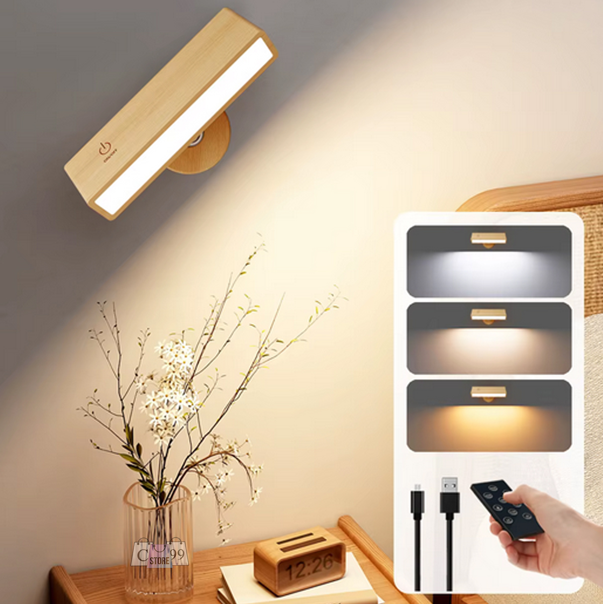 Ilumina tu espacio con estilo y funcionalidad gracias a esta lámpara LED de pared tipo madera, diseñada para aportar calidez y modernidad a cualquier habitación. Su acabado elegante combina perfectamente con la decoración contemporánea, mientras que sus tres modos de luz ajustables (blanco frío, blanco cálido y luz amarilla) permiten crear el ambiente ideal en cada momento.